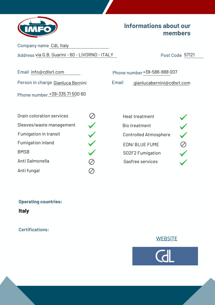 CdL Italy, located at Via G.B. Guarini 60 in Livorno, Italy, with the postal code 57121, offers its services to both local and international clients. You can contact the company at +39-586-888 007 or via email at info@cdlsrl.com. Gianluca Bernini manages the company’s operations and can be personally reached at +39-335 71 500 60 or through his email, gianlucabernini@cdlsrl.com. This information provides direct and easy access for any inquiries or services needed.